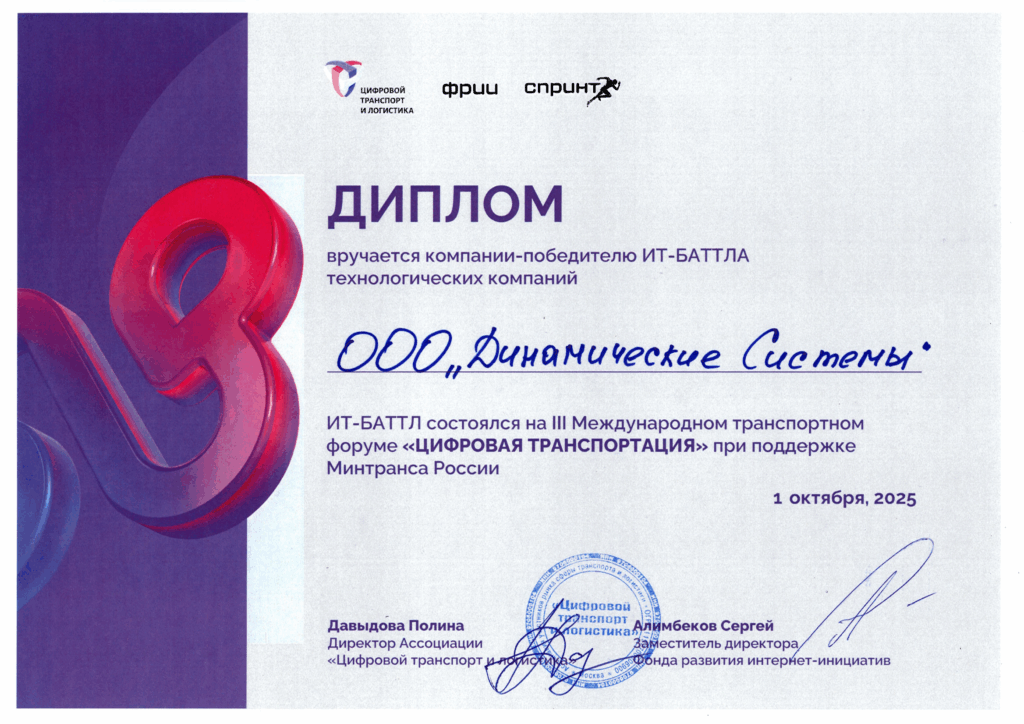Российский разработчик занял призовое место престижного конкурса, организованного Ассоциацией «Цифровой транспорт и логистика» совместно с Министерством транспорта РФ и Правительством Российской Федерации. Форум «Цифровая Транспортaция 2025» предоставил уникальную площадку для демонстрации новейших цифровых решений, направленных на модернизацию и оптимизацию транспортных и логистических процессов.
